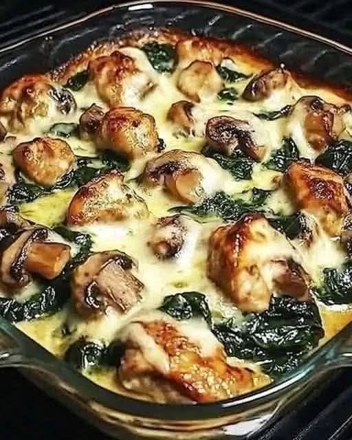 Chicken Spinach & Mushroom Low-Carb Oven Dish. February 3, 2026 Chicken Spinach & Mushroom Low-Carb Oven Dish Creamy, savory, and satisfying—high protein, low carb, and baked all in one dish. ⏱️ Time Prep: 10–15…