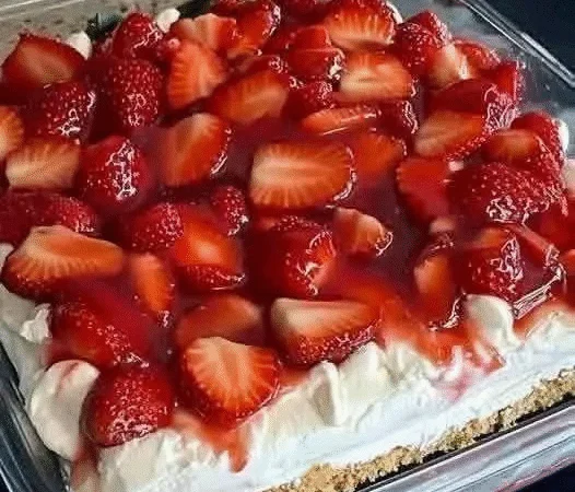 Strawberry Delight, A creamy, fruity dessert layered with fresh strawberry goodness.