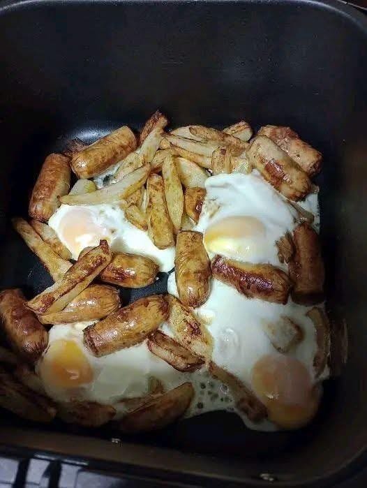That looks like a hearty air fryer breakfast skillet with sausages, fries (or potatoes), and eggs all cooked together. Here’s a detailed recipe so you can recreate it perfectly.