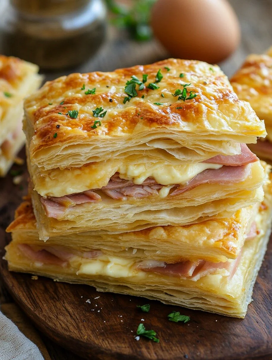 Crispy Ham & Cheese Puff Pastry Stacks