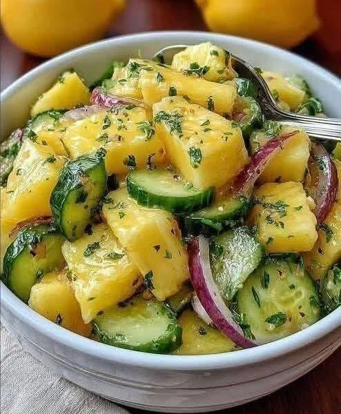 Pineapple Cucumber Salad February 7, 2026 Pineapple Cucumber Salad Serves 4 Ingredients 2 cups fresh pineapple, diced 1 large English cucumber, sliced or diced ¼ red onion, very thinly sliced…