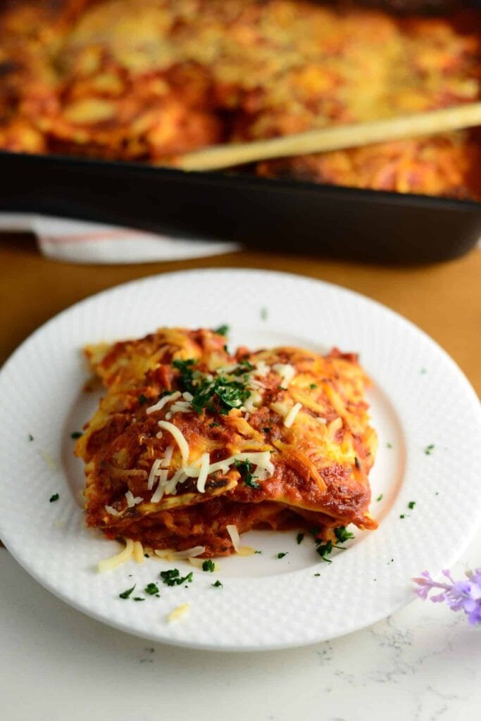 • Remove from heat and mix in mozzarella, Parmesan, and parsley. Let it cool slightly.