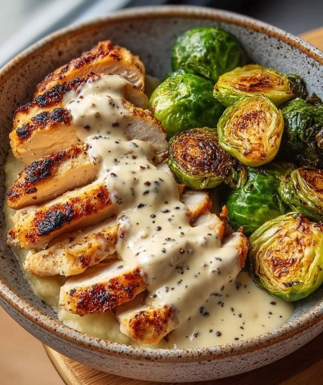 A rich, satisfying, and savory one-pan dish, this Mediterranean Creamy Garlic Chicken & Brussels Sprouts blends the bold flavor of seared, paprika-seasoned chicken with a luxurious garlic-Parmesan cream sauce. Roasted or pan-seared Brussels sprouts add a caramelized crunch, balancing the creaminess perfectly. It’s comfort food with a Mediterranean flair—elegant enough for guests, easy enough for weeknights.