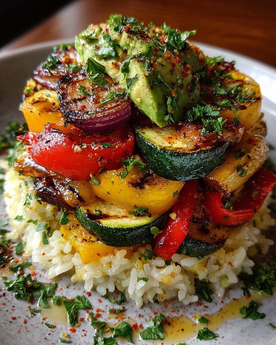 Grilled Vegetable & Avocado Rice Stack