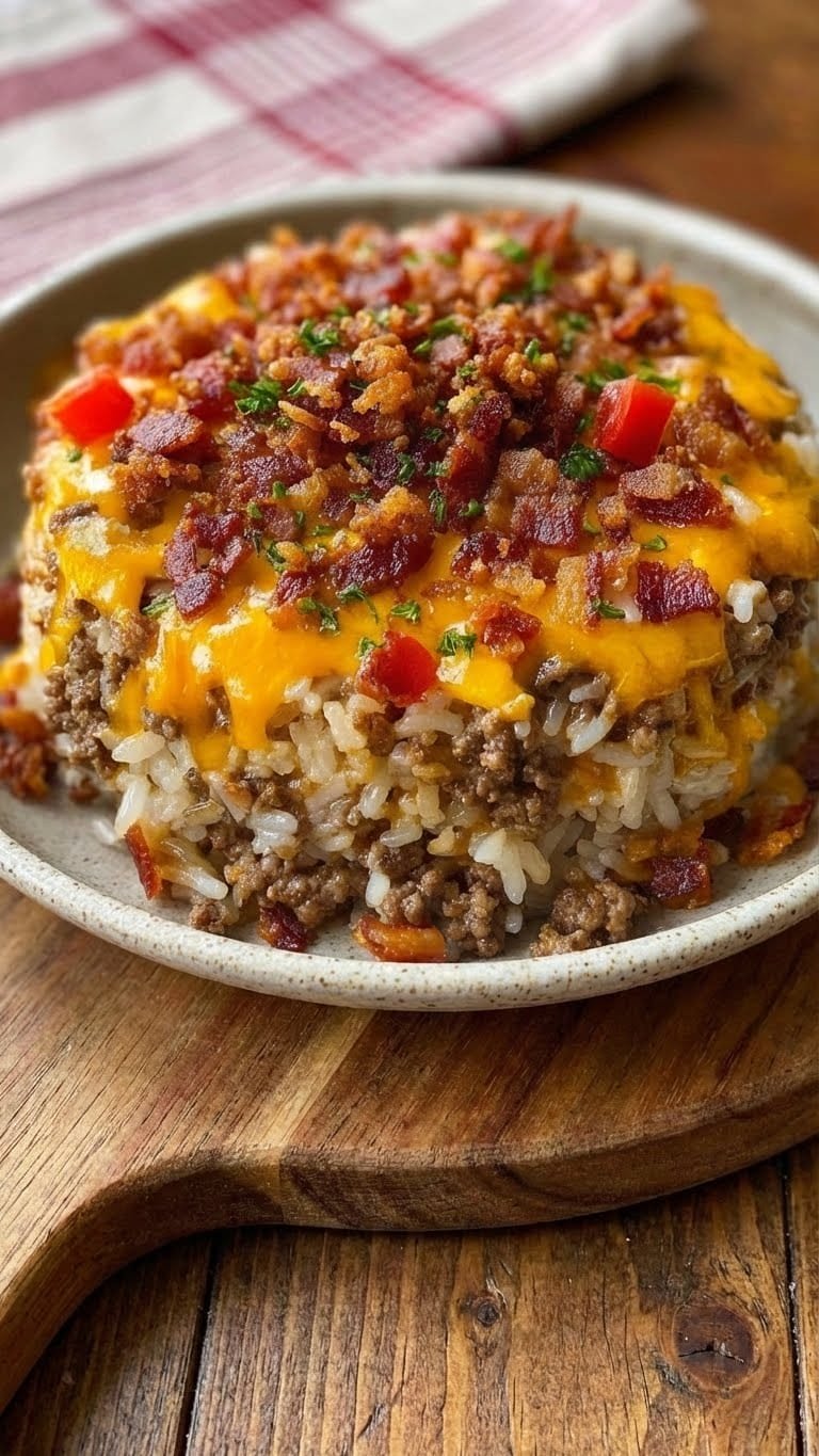 🍔 One Pot Bacon Cheeseburger Rice