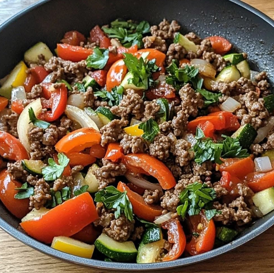 This Savory Mediterranean Ground Beef and Veggie Skillet is a one-pan meal packed with bold Mediterranean flavors. It combines lean ground beef with colorful vegetables, aromatic herbs, and a touch of lemon for a satisfying and nutritious dish. It’s perfect for a quick weeknight dinner and can be served on its own, over rice, quinoa, or with warm pita bread.