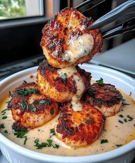 🔥 Seared Scallops with Spicy Cajun Cream Sauce
