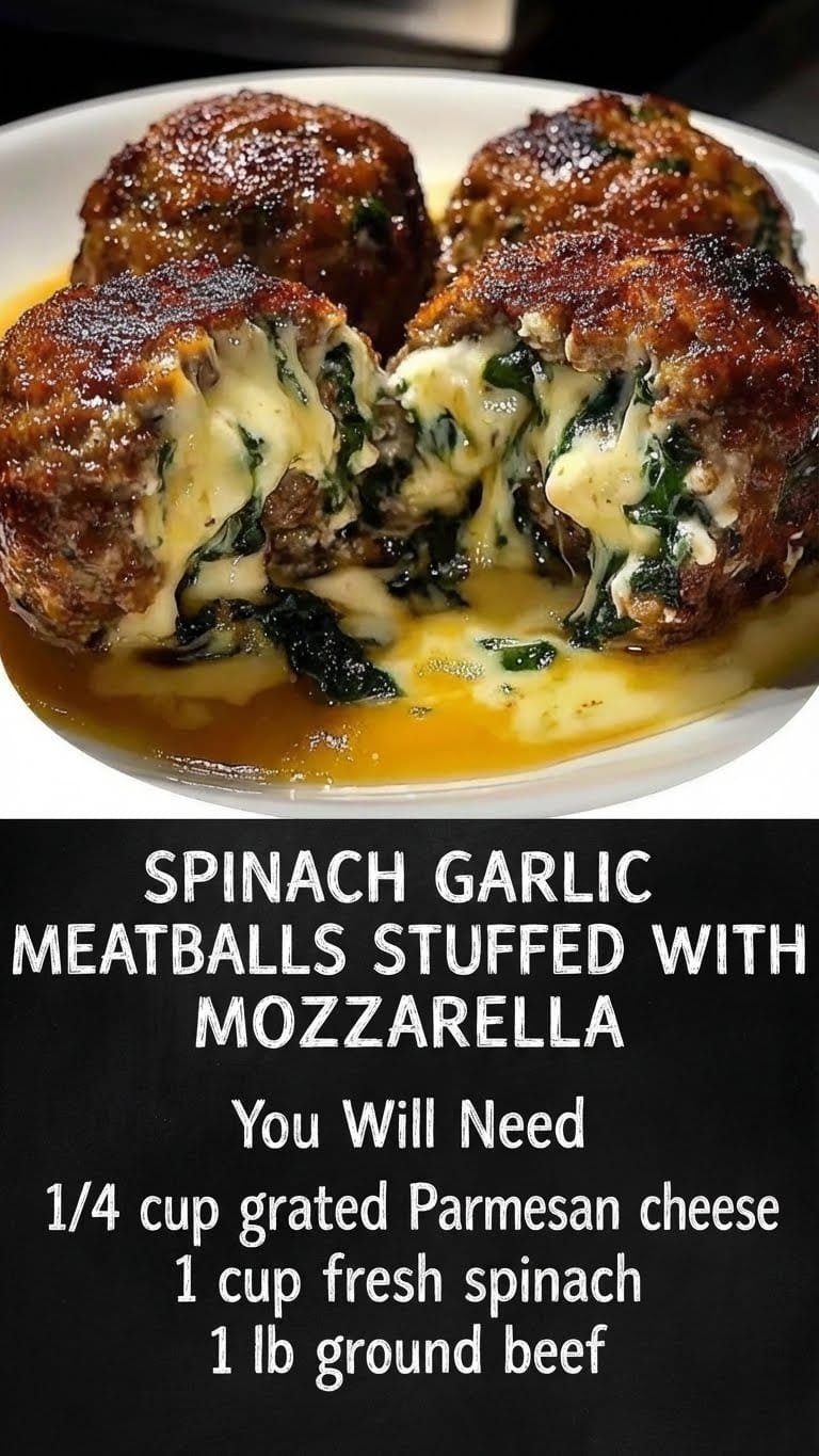 🧄🧀 Spinach Garlic Meatballs Stuffed with Mozzarella